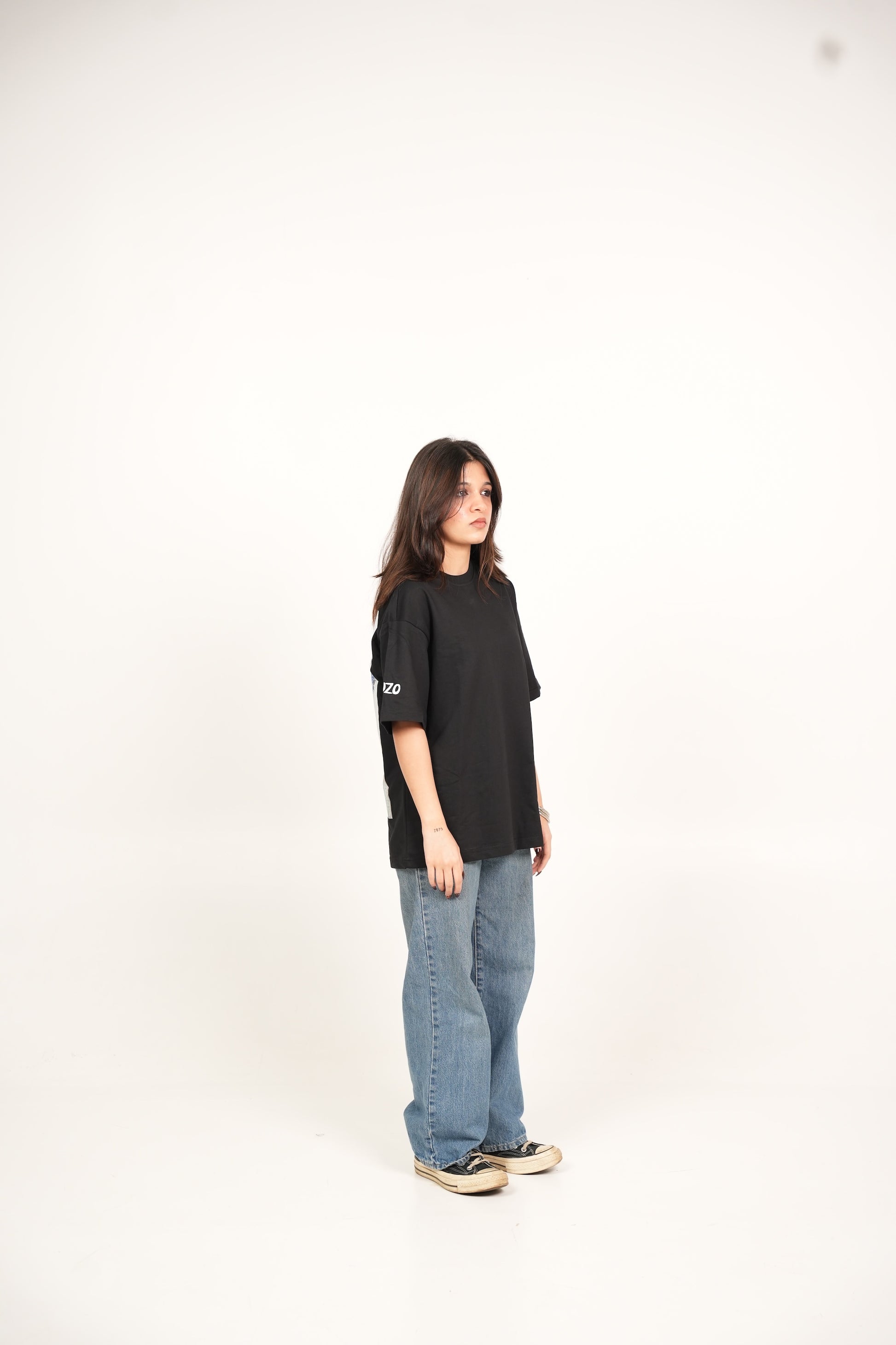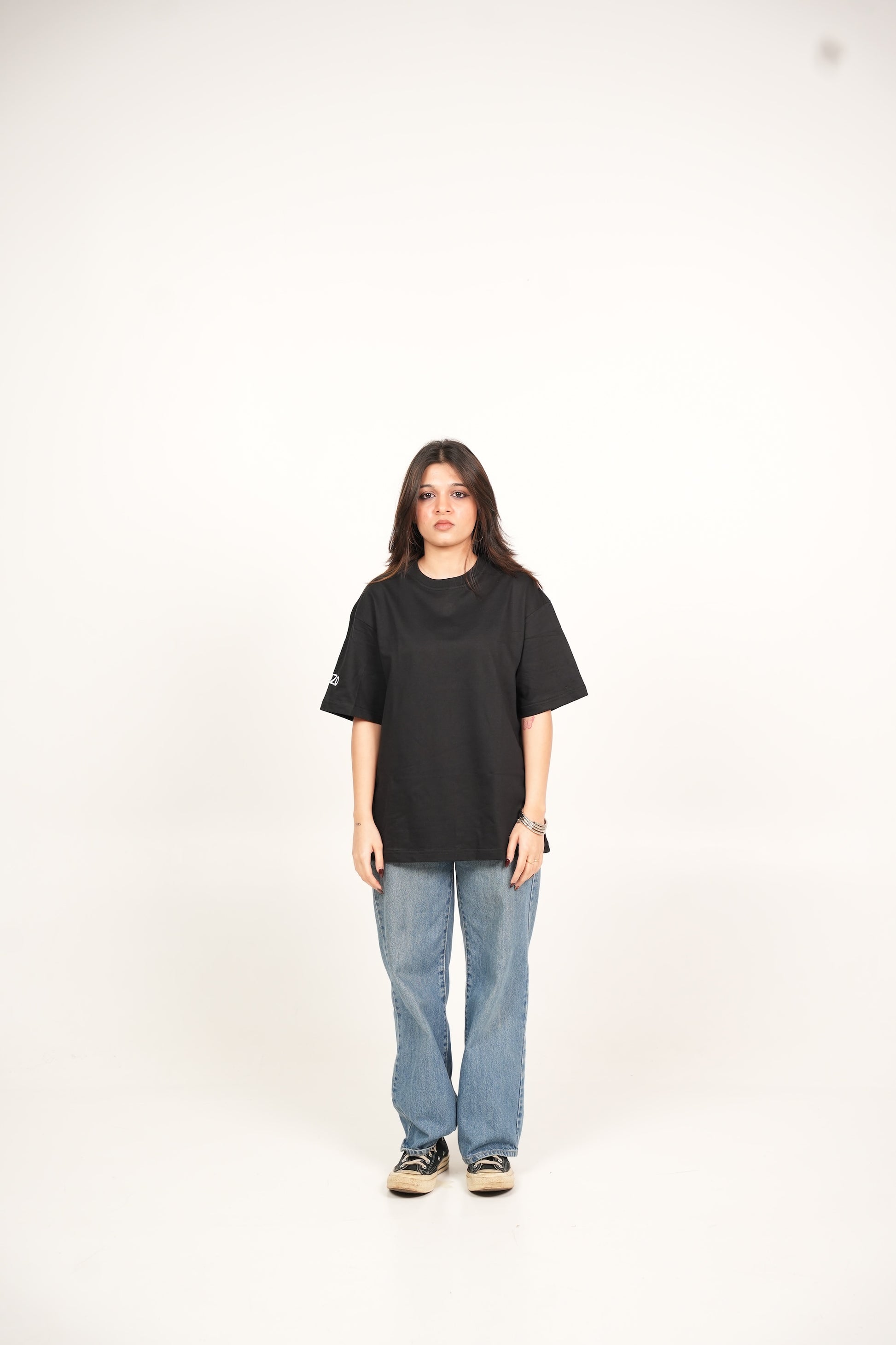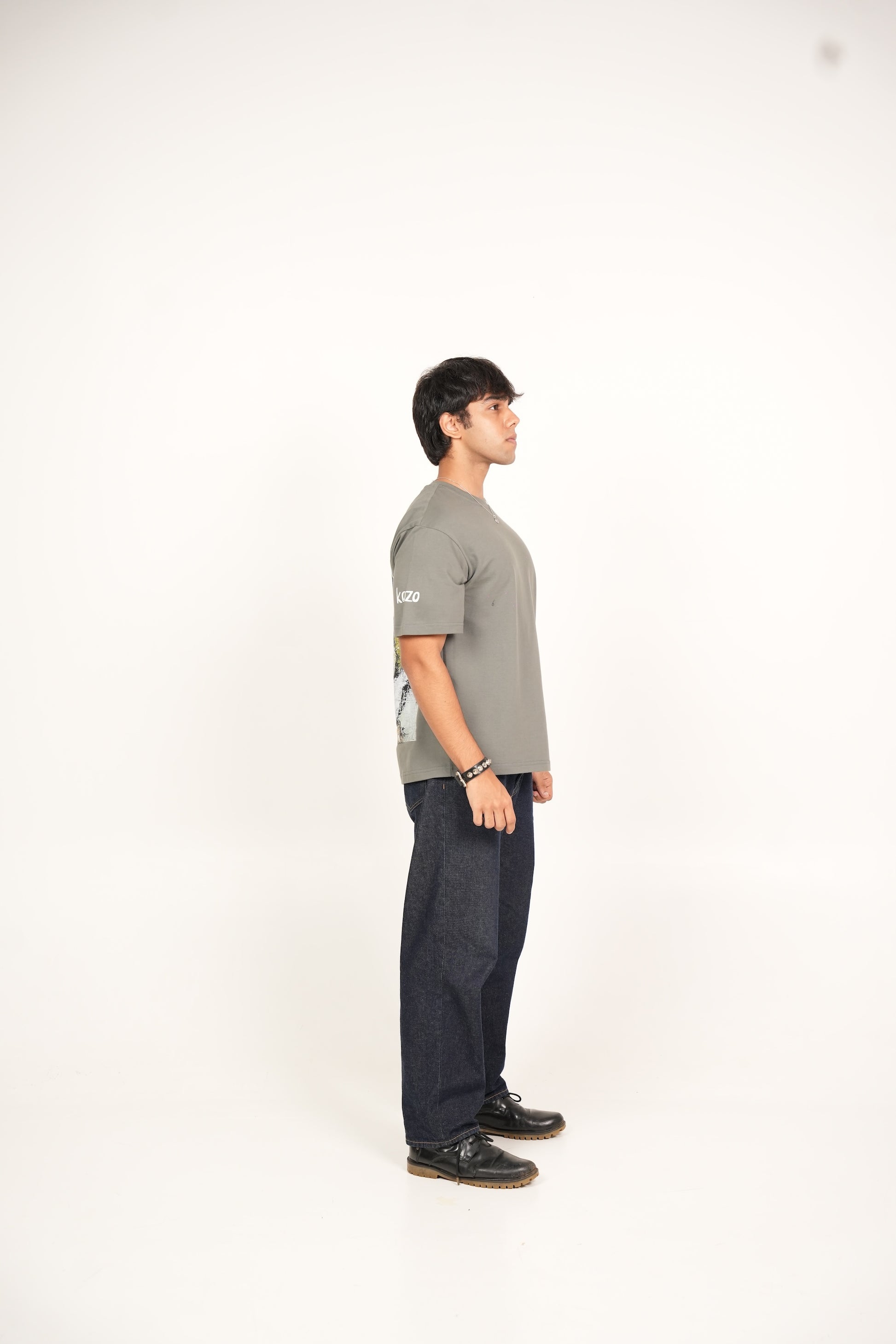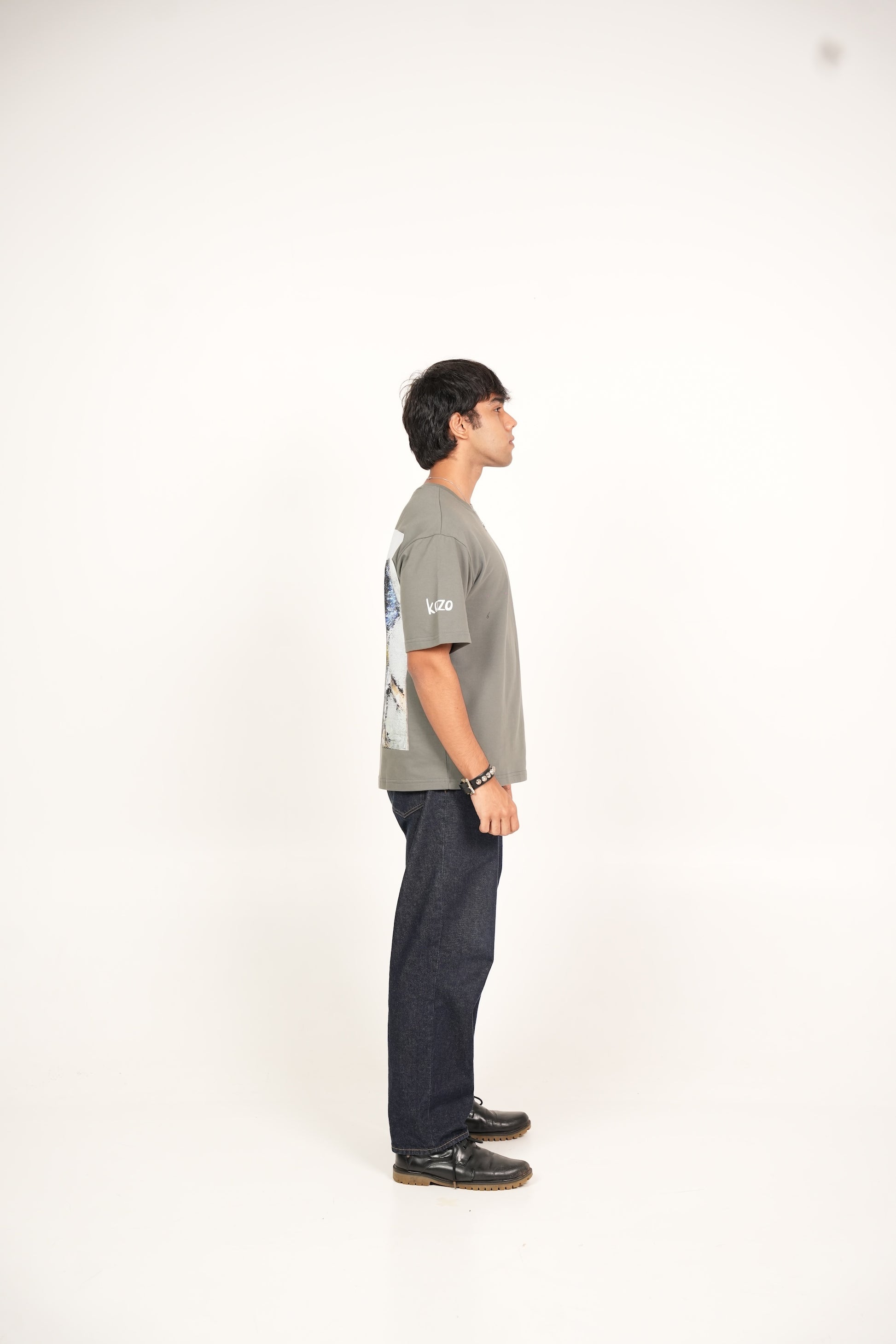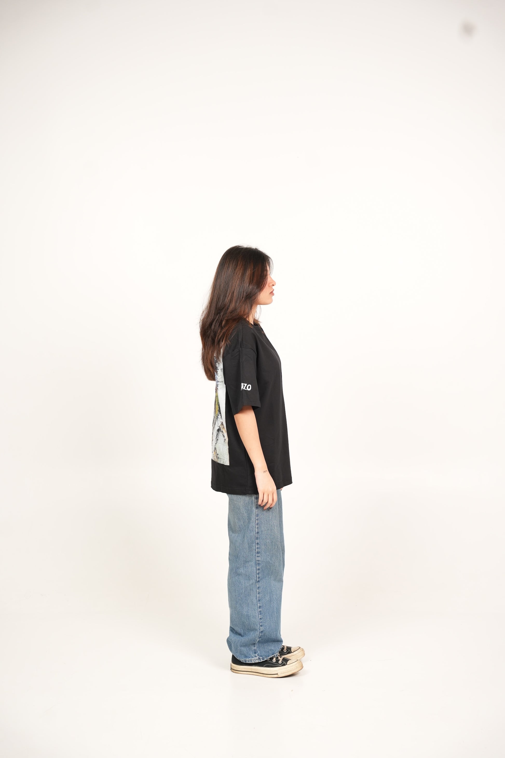 A hand-painted acrylic art piece with striking green knife painting strokes imprinted on an oversized fit t-shirt. Made with cotton, heavyweight and breathable.